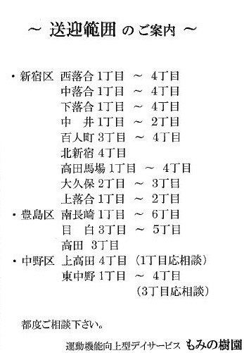デイサービス 空き 中野区 上高田(介護・リハビリ ライフ応援)サイト![デイサービスセンター もみの樹園] · デイサービス 空き 中野区 東中野(介護・リハビリ ライフ応援)サイト![デイサービスセンター もみの樹園] 「 特別養護老人ホーム もみの樹 ... |